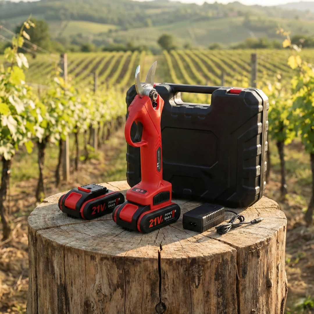 Predstavljamo vam naše inovativne električne makaze za orezivanje sa 21V baterijama, savršene za sve voćare i vinogradare koji traže efikasnost i lakoću u radu.