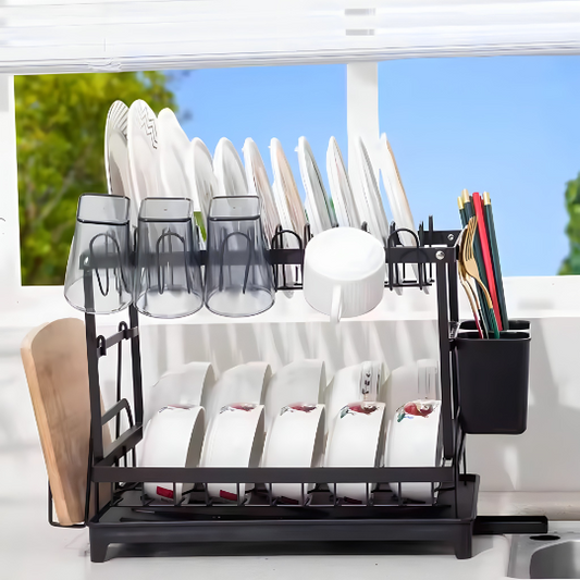 Stalak za sudove - Oceđivač u 2 nivoa za tanjire, escajg i čaše