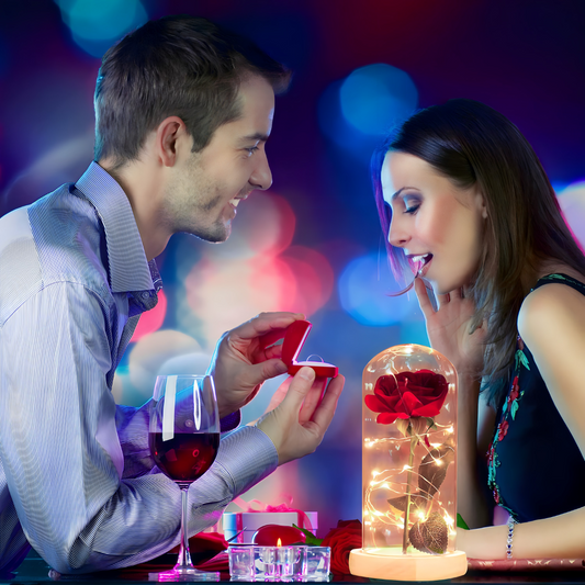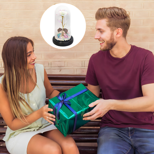 Meda i ruža u staklenom zvonu sa LED svetlom