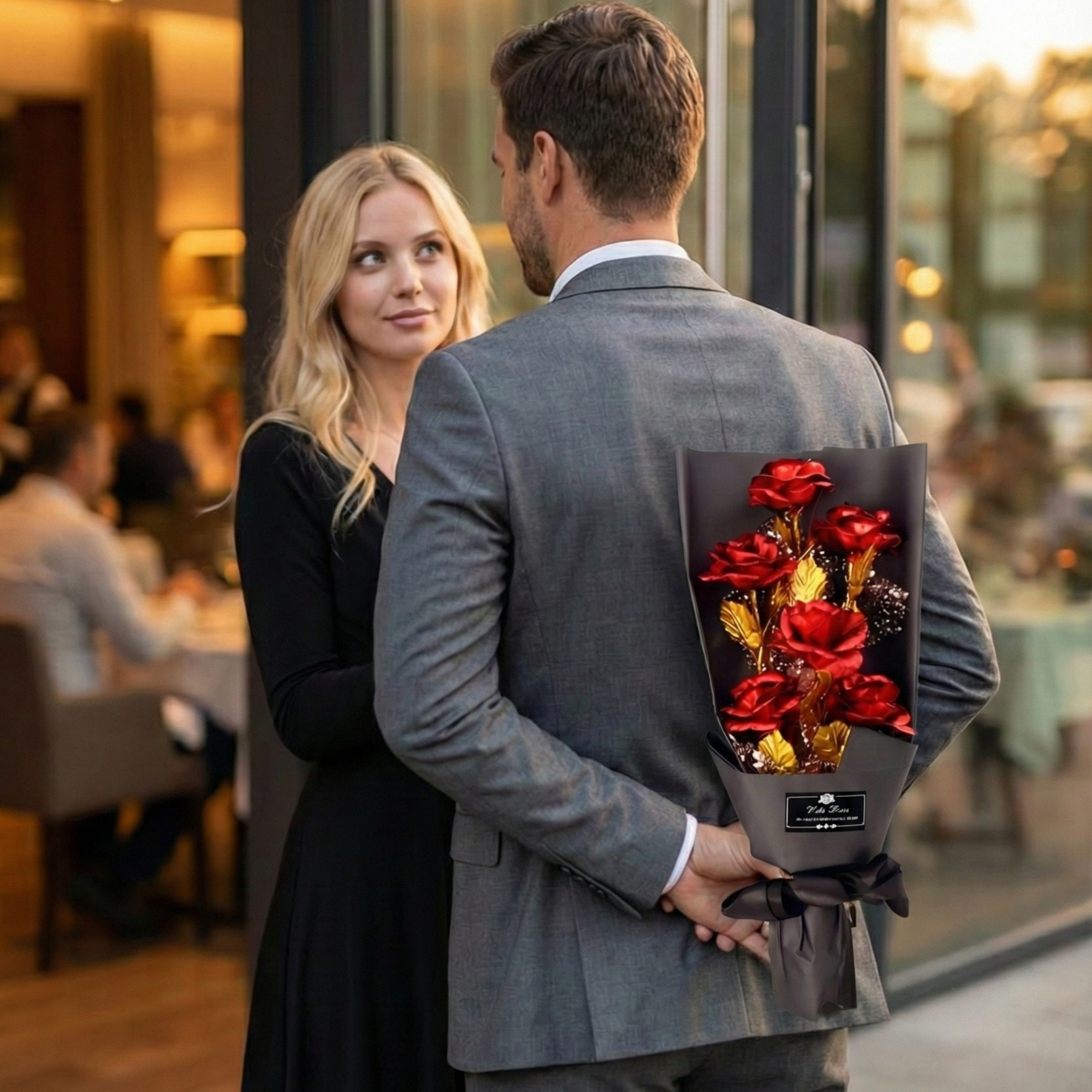 Za razliku od klasičnih cvećki koje uvenu, ovaj buket zlatnih ruža je izrađen od visokokvalitetnih materijala i dizajniran da traje zauvek. Ne bledi, ne vene i ostaje simbol vaših osećanja.
