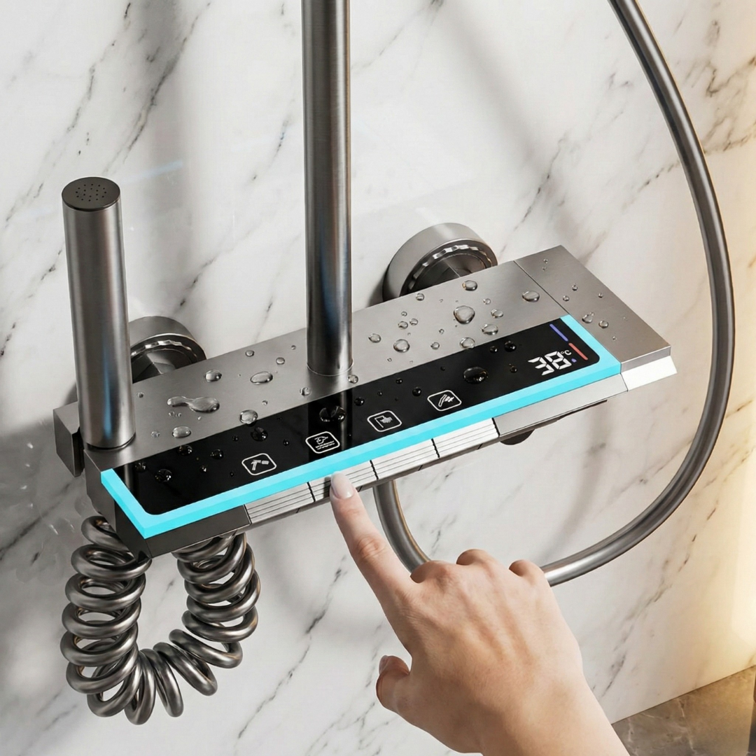 Za razliku od običnih tuš setova, naš luksuzni zidni tuš sa dodacima i displejom nudi napredne funkcije, vrhunski kvalitet i moderan izgled. Pomoću preciznog upravljanja, vi birate savršeno iskustvo tuširanja koje vas opušta i osvežava.
