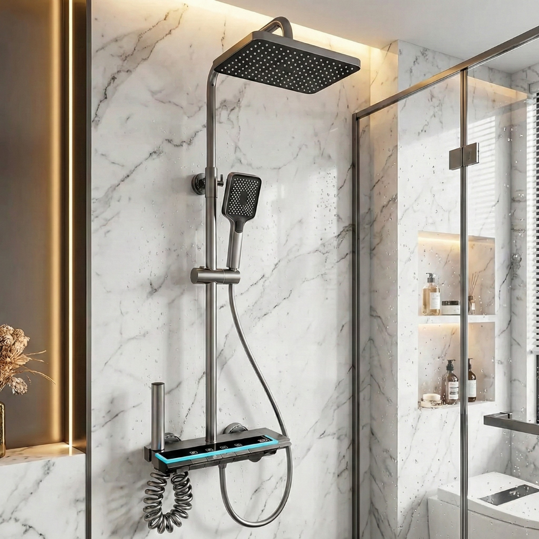 Luksuzni zidni tuš sa dodacima i displejom – Savršeno iskustvo tuširanja uz moderan dizajn!