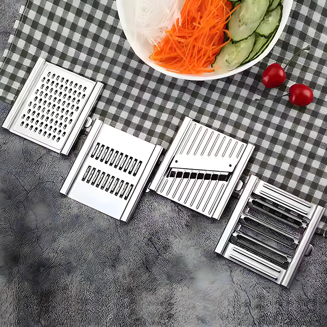 Sa više različitih nastavaka, možete lako prilagoditi sečenje prema vašem receptu – bilo da pravite salate, pomfrit, supe ili ukrasne dekoracije za serviranje.