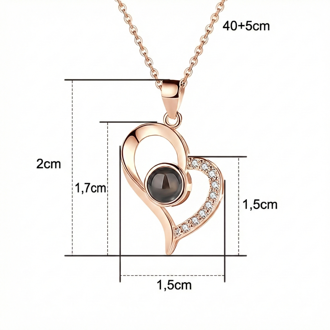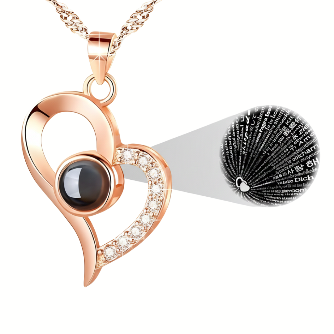 U srcu priveska nalazi se specijalno ugravirano staklo koje skriva reči "Volim te" na 100 jezika uključujući i srpski. Ova poruka može se videti na tri različita načina: