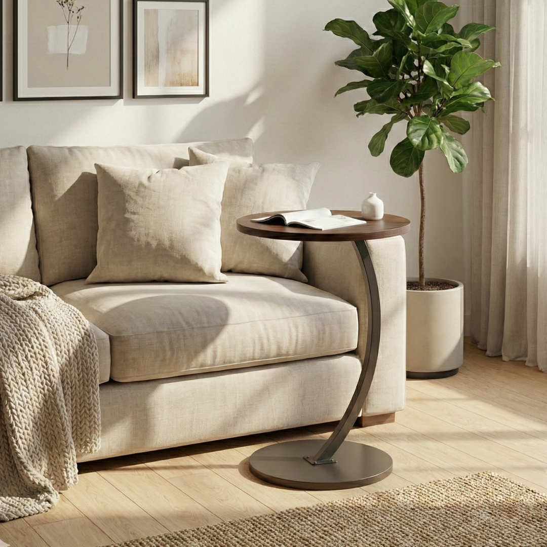 Okrugli C stočić je savršeno rešenje za sve koji žele funkcionalan komad nameštaja koji se lako uklapa u svaki kutak doma – bilo da ga koristite pored sofe, kreveta ili u radnom prostoru. Njegov specifičan C oblik omogućava da ga lako približite, dok okrugla ploča pruža dovoljno mesta za odlaganje stvari.