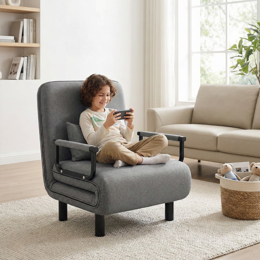 Ovu fotelju izdvaja 3u1 funkcionalnost jer u jednom komadu nameštaja dobijate udobnu fotelju, ležaljku za opuštanje i praktičan ležaj za spavanje, uz moderan dizajn i jednostavno rasklapanje.