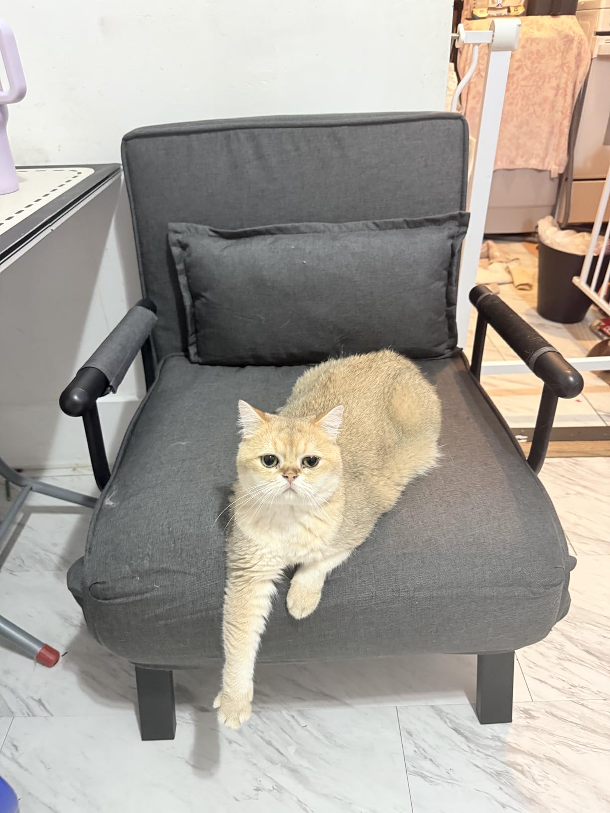 Fotelja je dizajnirana da bez problema izdrži težinu odrasle osobe i pruža stabilnost tokom sedenja ili ležanja.