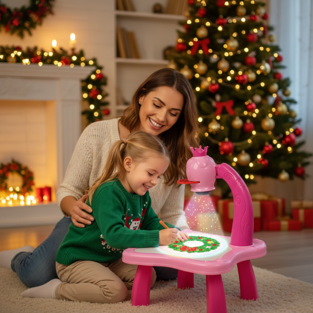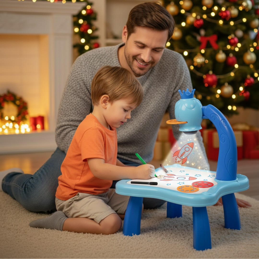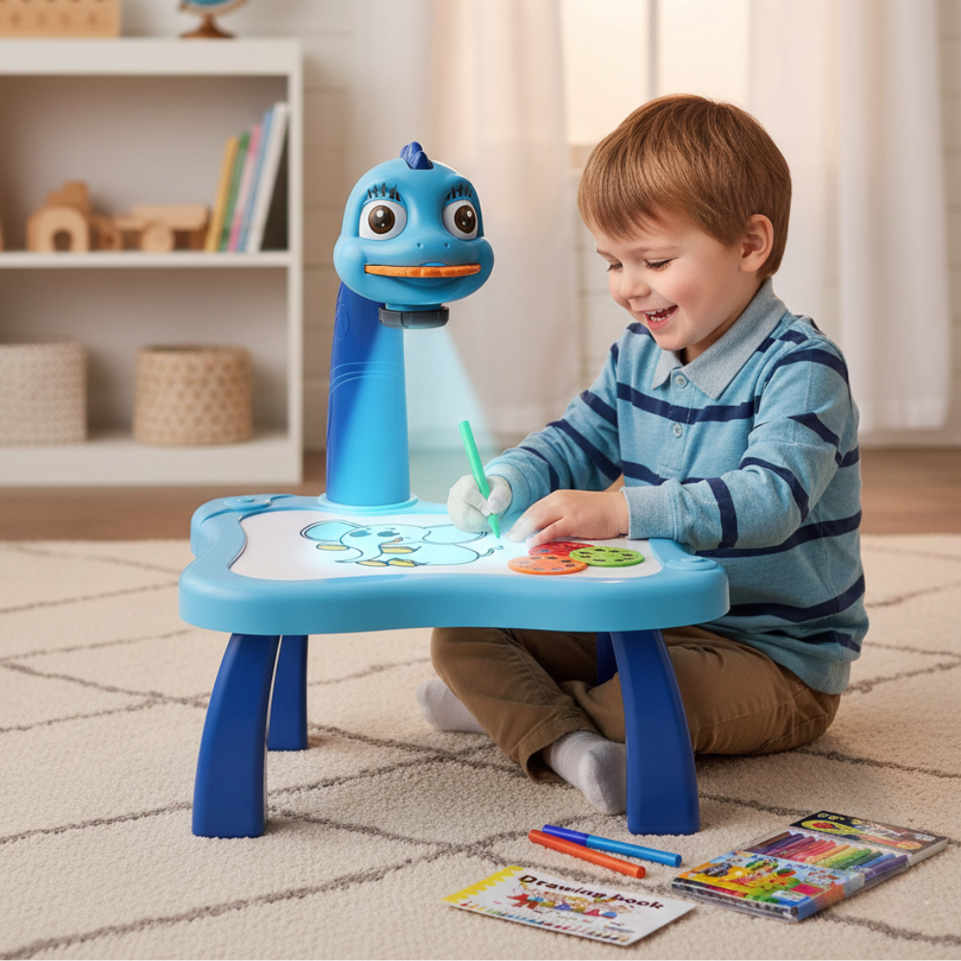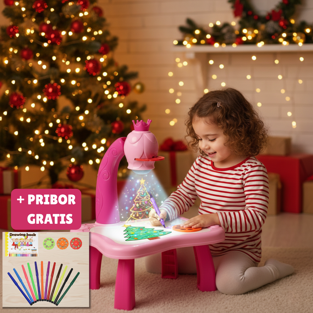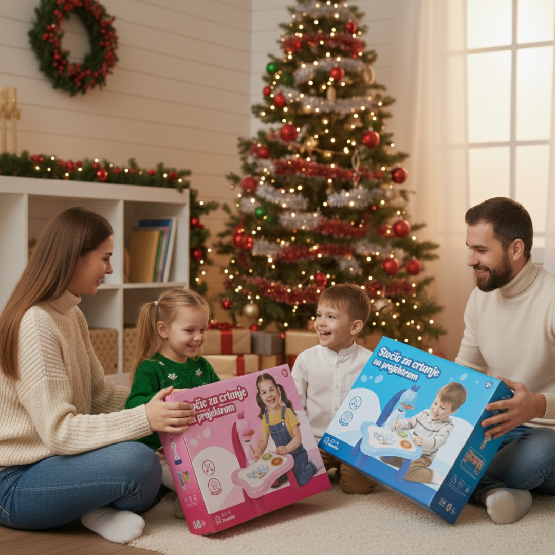 Stočić za crtanje sa projektorom pomaže deci da bez muke naprave „prave“ crteže – ubace slajd, upale projektor i samo prate linije na papiru. Crtanje tako postaje zabavna igra, a ne frustracija, pa se rado vraćaju bojicama umesto da brzo odustanu.