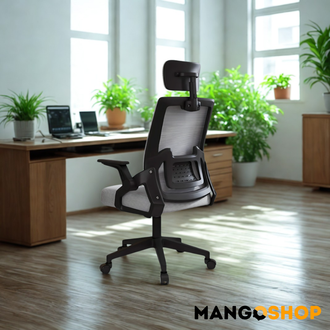 Gasni amortizer druge klase obezbeđuje stabilnost i pouzdanost, a rotacija od 360° omogućava lako kretanje bez ustajanja. Integrisani naslon za glavu dodatno rasterećuje vrat i gornji deo leđa, pružajući dodatnu podršku tokom radnog dana.