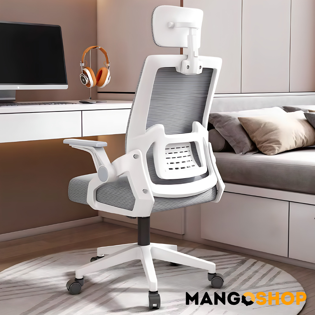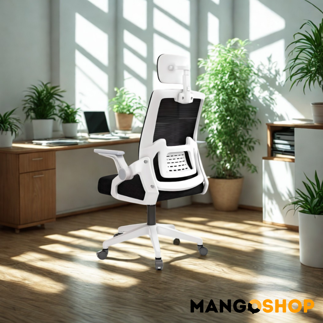 Naslon izrađen od prozračne mrežice omogućava konstantnu cirkulaciju vazduha i smanjuje osećaj nelagodnosti čak i pri dužem radu. Čvrsta plastična konstrukcija i elegantne bele nogare dodaju sofisticiranost i stabilnost svakom radnom prostoru.